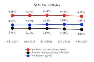 | Total revenue (net) during the first quarter of 2026 was approximately $266.7 million, representing an increase of $6.6 million, or 2.5%, year over year. While revenue moderated from the fourth quarter, results demonstrate the durability of the Company’s revenue base and provide a strong foundation for further growth as 2026 progresses. | During the first quarter of 2026, the Company demonstrated continued expense discipline and effective balance sheet management. Interest expense declined to $87.1 million primarily due to the declining interest rate environment. Non‑interest expense remained well controlled at approximately $114.0 million, consistent with prior quarter levels. Together, these trends highlight the Company’s focus on cost efficiency and operating discipline, supporting strong operating leverage and overall earnings performance. | |