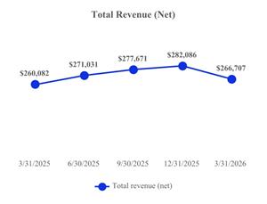 | Total revenue (net) | $266.7 million | $282.1 million | $277.7 million | $271.0 million | $260.1 million |