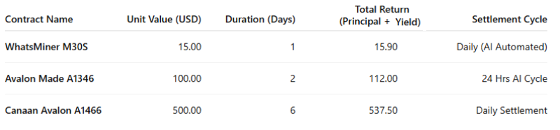 Each contract operates under Credit Blockchain’s AI computing network, which autonomously manages allocation, optimization, and performance analytics across the Ripple (XRP) ecosystem.